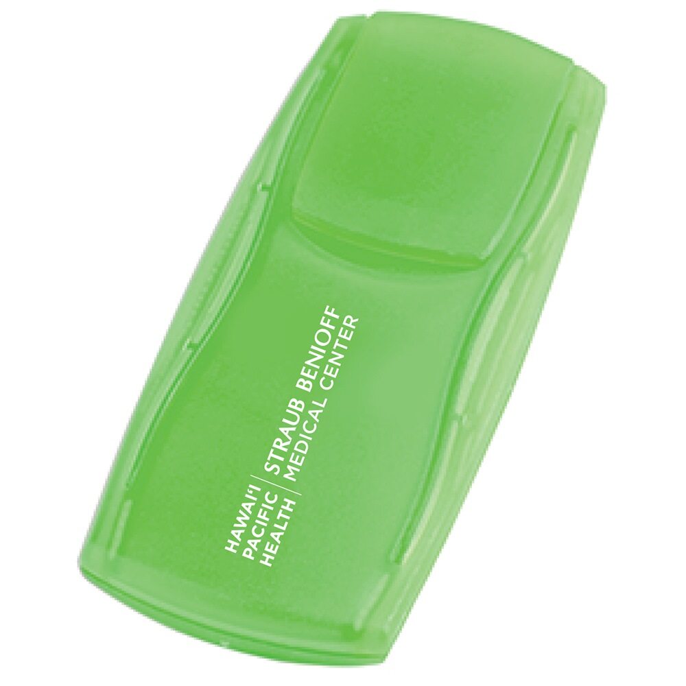 Reusable plastic case holds 3 latex-free bandages, 2 snip bandages and first aid cream packet. Made in the USA. Imprinted with the Straub Benioff Logo. Individually Polybagged