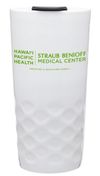 15.2 oz Porcelain tumbler with push-on lid, sliding cover. Hand Wash recommended. Do not microwave. Imprinted with Straub Benioff Logo, Included a gift box.