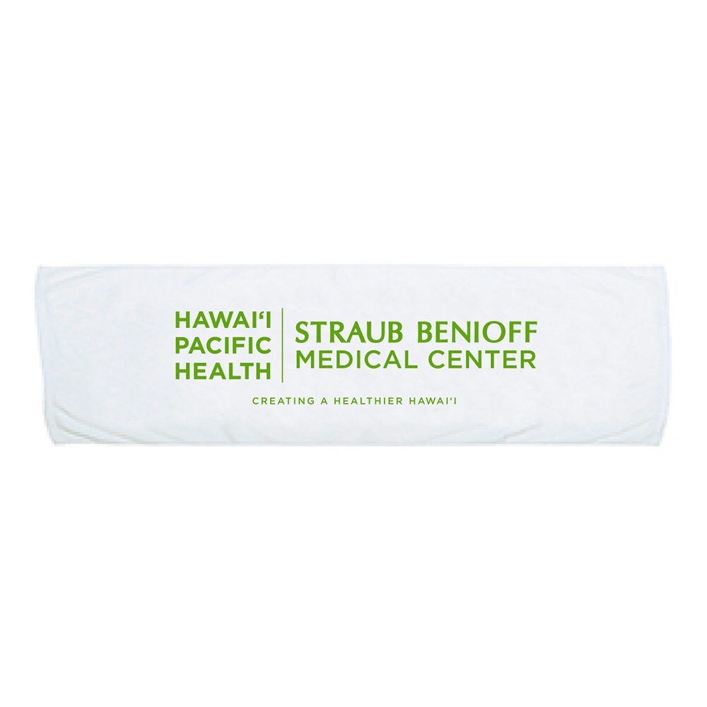 100% cotton terry velour towel Measures 12" x 42". Patented Antimicrobial technology is infused into the structure of the towel, prevents bacteria and fungus while helping fight MSRA, staph, germs, and odor. Imprinted with the Straub Benioff Logo.