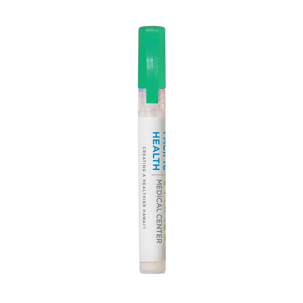 0.34 oz. Hand Sanitizer Spray Pump meets FDA requirements and is lightly scented. Measures the approximate size of 5 1/4" H. Imprinted with the Straub Benioff Logo.