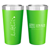 16.9 oz double wall 18/8 stainless steel thermal pint with copper vacuum insulation, high polish rim, and powder-coated finish. 6"h x 3-1/2"w; Hand wash recommended, Do not microwave.