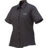 Ladies' short sleeve button up shirt 65% polyester, 35% cotton poplin woven fabric blend, with Pali Momi Logo embrodiered on left chest.