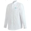 Men's long sleeve button down shirt 65% polyester, 35% cotton poplin woven fabric blend with Hawaii Pacific Health logo embrodiered on left chest above upper patch pocket.