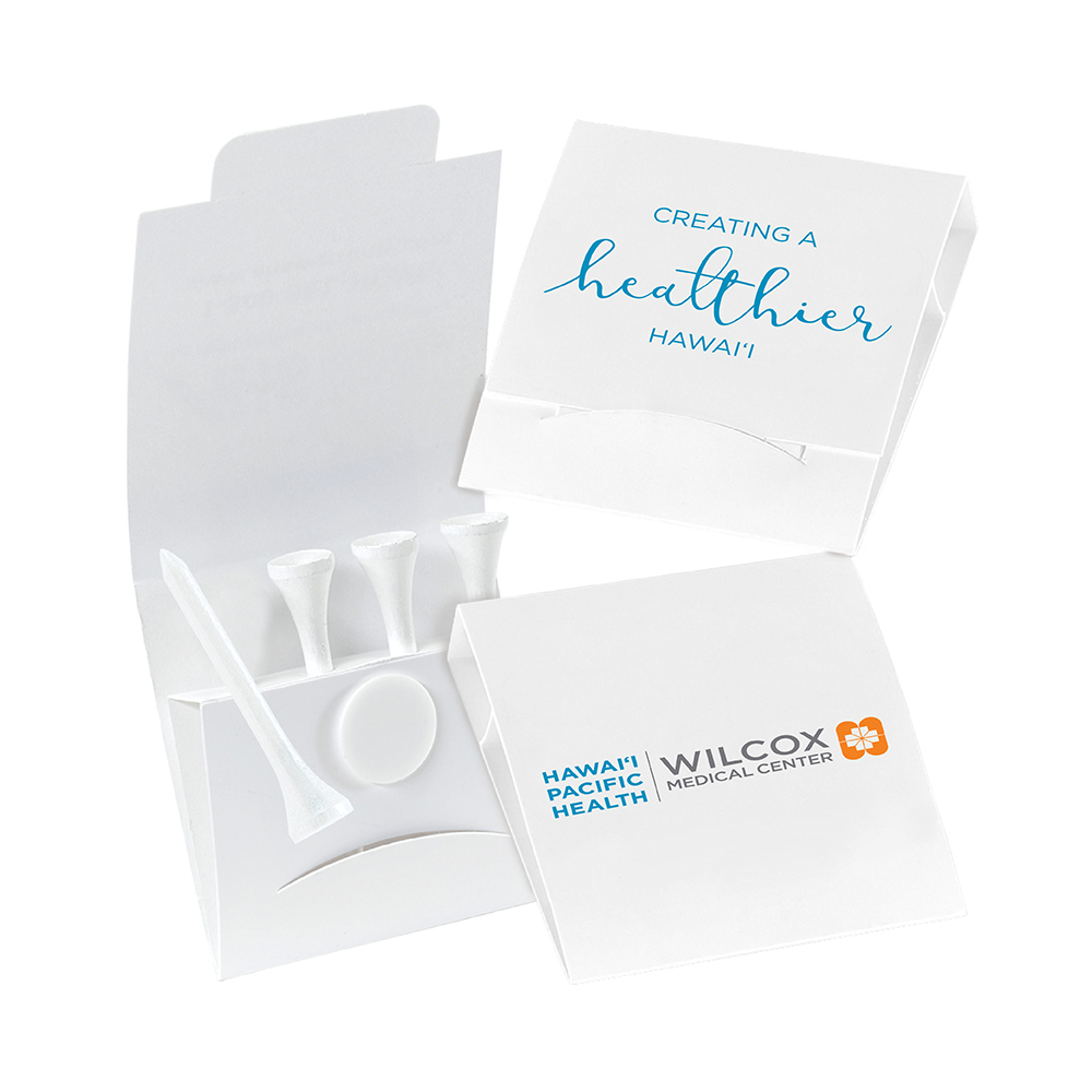 - The tees are made of wood and the ball marker is made of plastic; with Wilcox Medical Logo