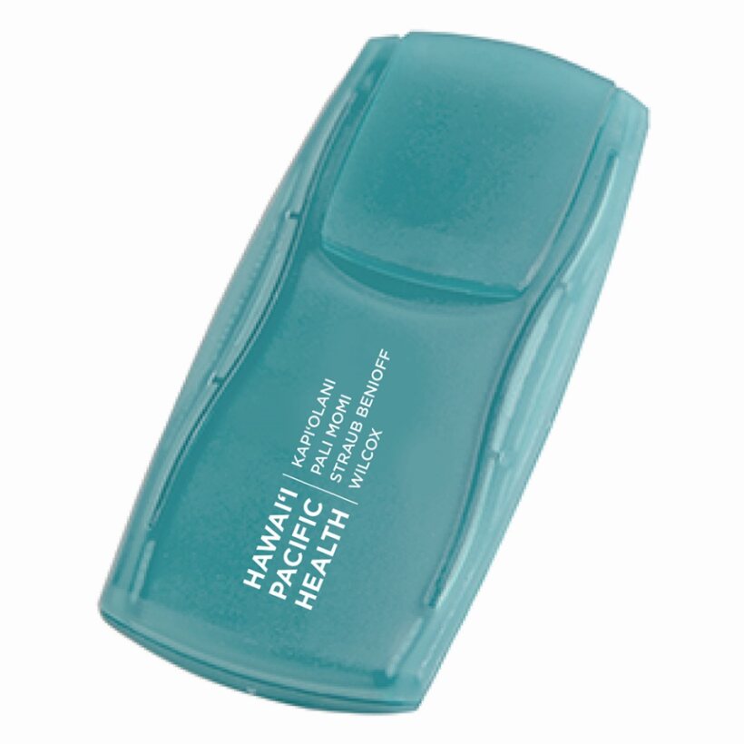 Reusable plastic case holds 3 latex-free bandages, 2 snip bandages and first aid cream packet. Made in the USA. Imprinted with the Hawaii Pacific Health Logo. Individually Polybagged