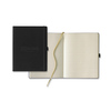 Large Journal with a pen loop and elastic closure. 240 lined ivory paper pages, back expandable pocket and gold ribbon marker. Measuring 7 2/5" x 9 4/5" ; Debossed Pali Momi Logo