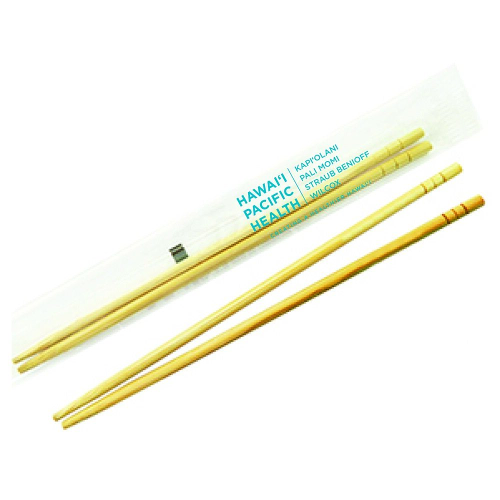Authentic chopsticks made from bamboo. Eco Friendly; Measures 9 1/4"; Two sticks individually packaged in cello wrapper and imprinted with the Hawaii Pacific Health Logo Authentic chopsticks made from bamboo. Eco Friendly; Measures 9 1/4"; Two sticks individually packaged in cello wrapper and imprinted with the Hawaii Pacific Health Logo