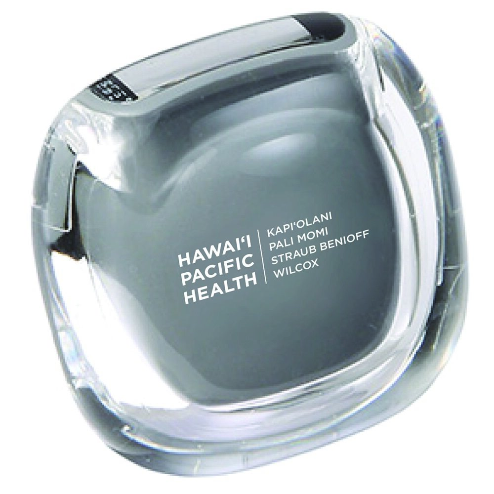 Pedometer can track up to 99,999 steps along with distance covered and calories burned. The energy saving auto shut-off and idle mode will help the inserted button cell battery last even longer. Attach this practical promo to your clothing or bag with the help of its secure clip. Imprinted with the Hawaii Pacific Health Logo.