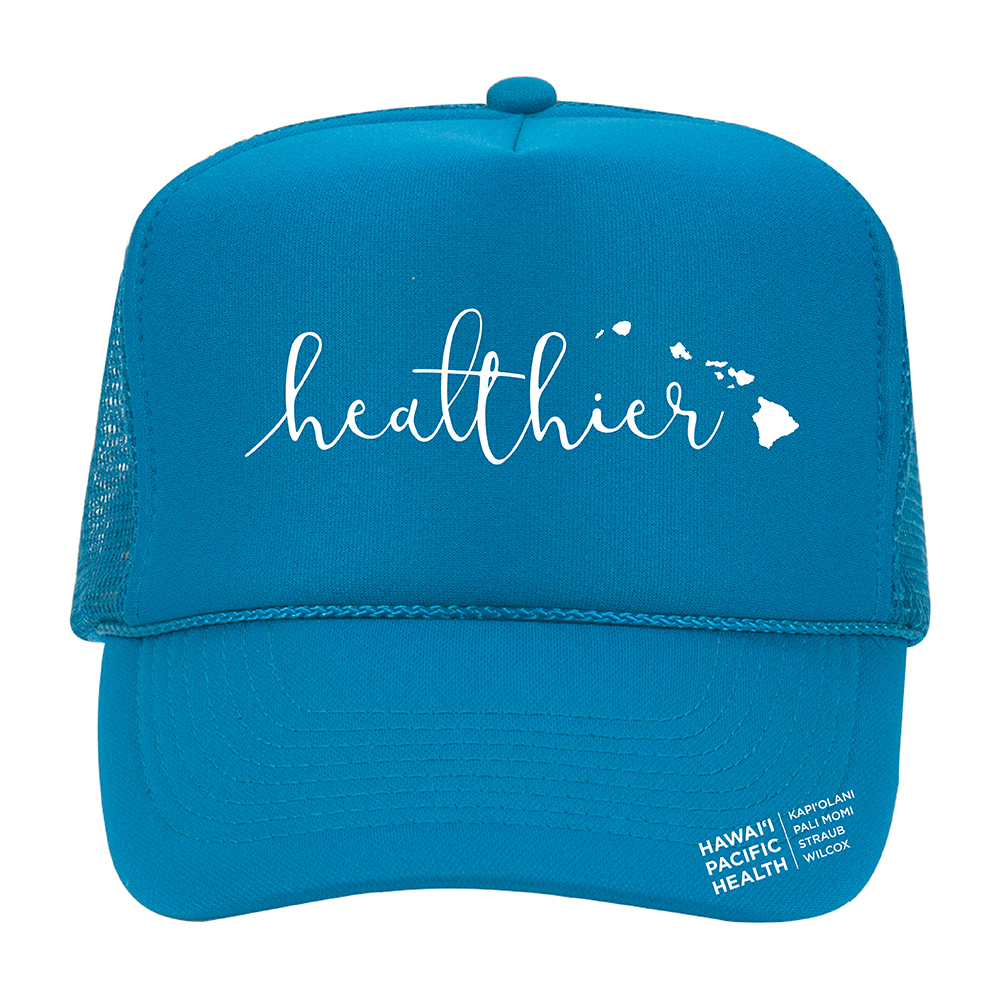 Hat, Polyester Cap, Turquiose - Healthier Hawaii Logo