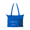 Conference tote! Measuring 15"W x 13"H x 4"D and available in several colors, this bold bag is made of 600-denier polyester and features a D-ring on the front with a large slip pocket, two card pockets, a mesh water bottle holder, an interior zippered security pocket, a zippered closure, and 26" handles.