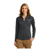 Ladies Full-Zip Jacket. With an inviting vertical texture, soft cotton interior and durable polyester exterior, this easy-to-layer style will have you thinking beyond a sweater for workdays or the weekend. Contrast color on the locker patch and inside the collar adds even more interest. 7.5-ounce, 63/37 poly/cotton Twill tape trim at neck Flattering seam details on front and back Open cuffs Double-needle cuffs and open hem.