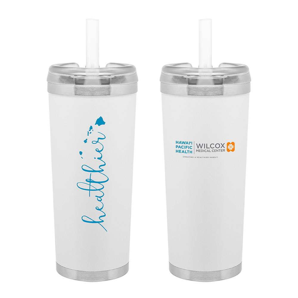 Tumbler, 24oz Thermal Cup with Straw - White - Wilcox Medical